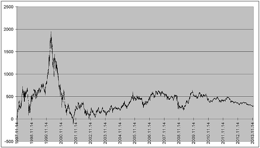 Az általánosan használt grafikonrajzoló programok segítségével készített charton szemmel látható, hogy a 280 forint körüli szinteken valóban mindenkori mélypontjára jutott a Magyar Telekom részvények árfolyama. Azonban ezek a programok egy fontos tényezőt nem vesznek figyelembe, ez pedig az évek során kifizetett hatalmas mennyiségű osztalékot, amelyek - tekintve az árfolyamhoz képest magas összegeket - fontosak lehetnek a részvény kilátásainak megítélésénél.