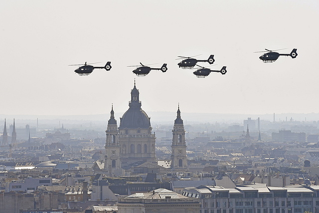A lobogó felvonása után a honvédtisztjelöltek teszik le esküjüket, majd a Parlament előtti Duna-szakaszon légiparádét tart a Magyar Honvédség.