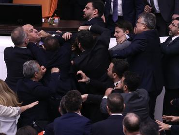 Ököllel estek egymásnak Ankarában a honatyák, miután egy ellenzéki törvényhozó terroristának nevezte a kormánypárt képviselőit.
