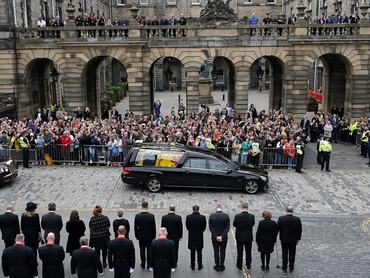 Hatalmas tömeg figyelte a II. Erzsébet koporsóját szállító konvojt a skót fővárosig