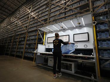 Tízszer olyan gyorsan rakják össze a csomagokat és mindössze egy ember kell a rendszer irányításához – robotizált rendszerrel pörgetné fel az online eladásait a Walmart.