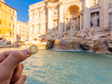 Duplán pénzkidobás a római Trevi-kútba érmét szórni