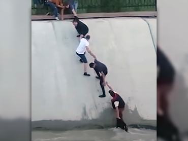 A We Love Dogz felidézi, egy járókelő az erős sodrású vízzel viaskodó négylábú segítségére sietett, majd többen is követték példáját. Igaz, nem első próbálkozásra sikerült a rögtönzött mentőakció.