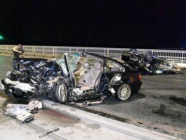 Eddig tisztázatlan körülmények között péntekről szombatra virradó éjszaka egy személyautó elütött egy kerékpárost, majd összeütközött egy másik autóval az Árpád hídon.