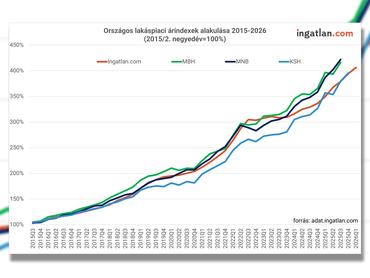 Bár az éves növekedési ütem brutálisnak tűnik, ez eltérően érinti a településtípusokat, vagyis Budapesten, a városokban és a falvakban eltérő intenzitással és ritmusban zajlik az áremelkedési periódus a MNB-lakásárindex értékei szerint.
