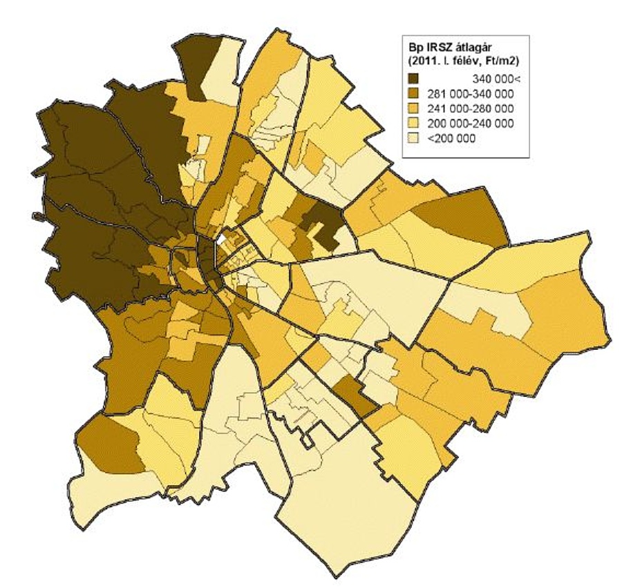 Az aktuális, 2011. I. félévi átlagárak alapján elmondható, hogy az általános prekoncepciónak megfelelően Budapest és agglomerációja, a Balaton környéke, illetve a nagyvárosokat tartalmazó kistérségek számítanak a legdrágábbnak.