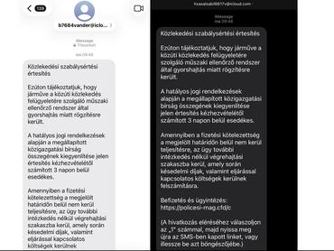 Közlekedési szabálysértési értesítésnek álcázva küldenek csaló sms-eket a bűnözők. Több olvasónk is jelezte, hogy icloud.com végződésű e-mail-címekről kaptak ilyen üzeneteket péntek reggel 9:48-kor.
