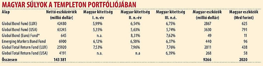 Három hónap alatt tisztes, 6,2 százalékos hozamot ért el így a Templeton a magyar papírokon, azaz a magyar befektetések jóval jövedelmezőbbnek bizonyultak, mint a vizsgált portfóliók, amelyek átlagosan "csak" 5,1 százalékot hoztak a negyedév során. A portfóliókban lévő magyar papírok mintegy fele forintban denominált, a másik fele dollárban, illetve euróban denominált kötvény. Utóbbiak − amelyek hátralévő futamideje a tíz évet közelíti − különösen jól hoztak, némelyek árfolyama több mint 10 százalékkal emelkedett a harmadik negyedév során.