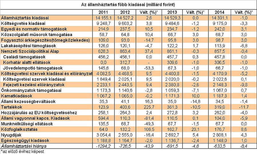 Azt tudjuk, hogy a 2012-re tervezett csökkenés túlnyomó részét az egészségügyi kormányzat a gyógyszerkiadások csökkentésével szeretné elérni - de láthatóan nem álla meg itt a folyamat, ugyanis kiadások 2013-ban tovább csökkennek - s csak 2014-re várható nominális növekedés. Hasonló a helyzet az önkormányzatoknál: mint ismert az önkormányzati törvény hamarost a parlament elé kerül, amely számos feladatot - a már említett egészségügyi ellátást, de az oktatás, vagy akár a tűzoltóságok fenntartását - elvonja a településektől, s azok is a kormányzati hatáskörbe kerülnek - így nem teljesen meglepő, hogy az önkormányzatok finanszírozása is folyamatosan csökken a következő években.