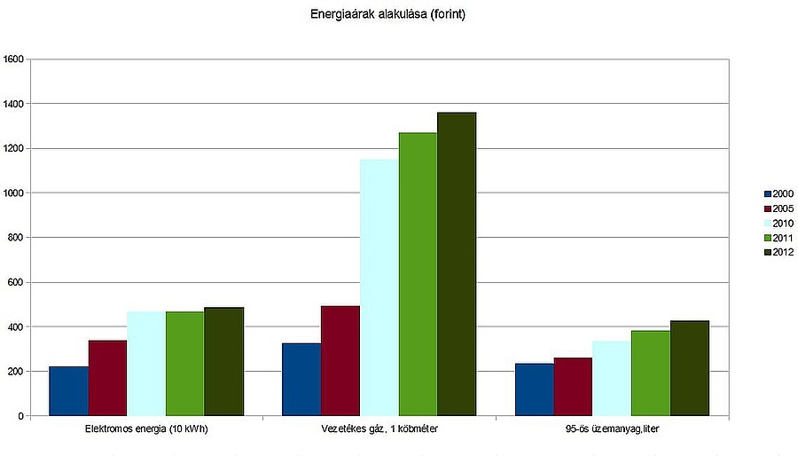 A vezetékes gáz ára azonban az áfaemelésnél is gyorsabban, 18,3 százalékkal emelkedett 2010 és 2012 átlagában, erre jön majd a kétszer 10 százalékos rezsicsökkentés. Az elektromos energia ára azonban ennél lényegesen lassabban 4,1 százalékkal nőtt - ez megfeleltethető az áfa emelésével. Az energiaköltségek valós emelkedését jól tükrözi a 95-ös benzin átlagárának változása, ugyanis az üzemanyagpiac egy olyan többszereplős versenypiac, ahova új szereplő is beléphet. Ez utóbbit jól tükrözi a propán-bután gáz árának változása, amelynek 29,4 százalékos emelkedése egybevág az üzemanyagárak 26,8 százalékos emelkedésével.