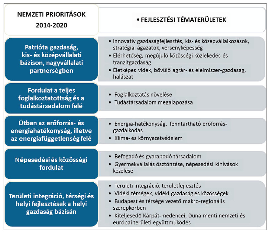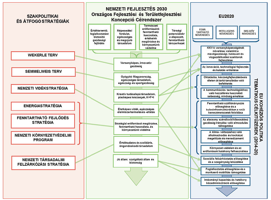 - Az első "Az ország makroregionális szerepének erősítése". A készítők a beavatkozási területek között a makro-regionális kapcsolatrendszer erősítését, a Kárpát-medencei gazdaságfejlesztési és vidékfejlesztési együttműködések kialakítását, a határ menti térségek, illetve a térszerkezet funkcionális fejlesztését említik.