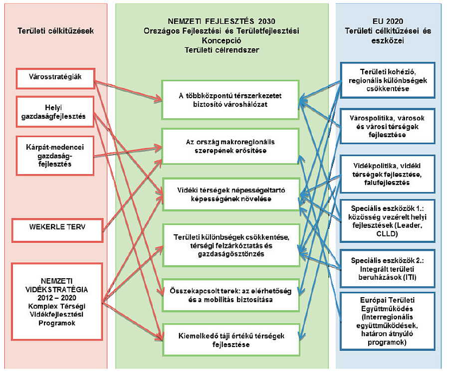 - A kettes számú területi specifikus cél "A többközpontú térszerkezetet biztosító városhálózat", amit többek között az egységes és fenntartható várospolitikával, a nagyvárosok fejlesztésével és a város-vidék kapcsolatok erősítésével érnének el.