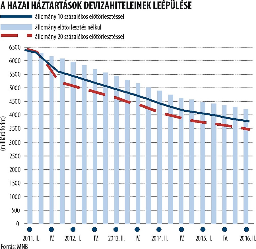 Összességében a jegybanki számítások szerint a potenciálisan forinthitellel kiváltható devizahiteles ügyfélkör mérete az állomány 30-40 százalékát érheti el, ami 1500-2000 milliárd forintos állomány. További korlátot jelent az infrastruktúra kapacitása is. Az MNB várakozásai szerint a teljes lakossági jelzálogalapú devizahitel-állomány mintegy 20 százalékát fogják törleszteni az adósok e program révén. Ennek hatására csökken a háztartások adóssága és nyitott devizapozíciója.