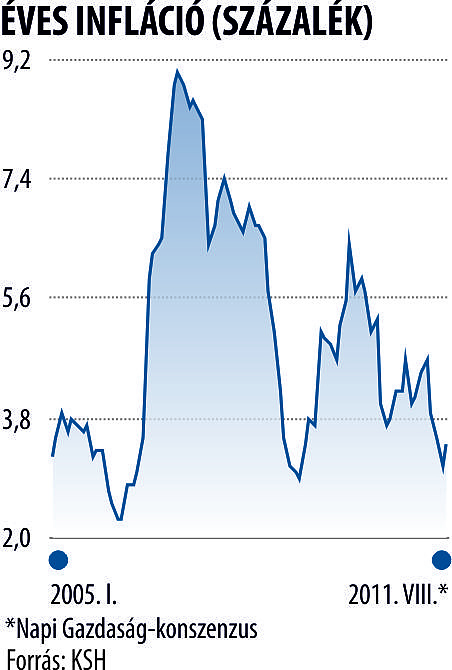 A júliusi rekordalacsony, 3,1 százalékos infláció után némileg megugrik a pénzromlás üteme, a Napi Gazdaság által megkérdezett elemzők szerint 3,4 százalékra emelkedhet a drágulás mértéke a KSH holnap megjelenő statisztikájában. A jó hír azonban az, hogy az augusztusi magasabb szám mögött szinte kizárólag a bázishatások állnak, tavaly a nyár utolsó hónapjában csökkent az áram ára, ami a bázisból kiesve feljebb tolja a fogyasztói árindexet.
