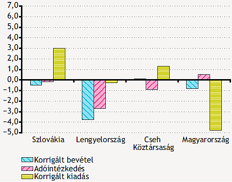 A korrigált adatok alapján a visegrádi országokkal összevetve Magyarország volt az egyetlen, ahol a válság alatt prociklikusan kellett a deficitet csökkenteni. Míg a régió többi országában 2007-2010 között a bevételek átlagosan 1,1 százalékkal estek, és a kiadások 4,3 százalékkal növekedtek, addig itthon mindkettő csökkent: a 0,4 százalékos bevételcsökkenés 1,1 százalékos kiadáslefaragással párosult.