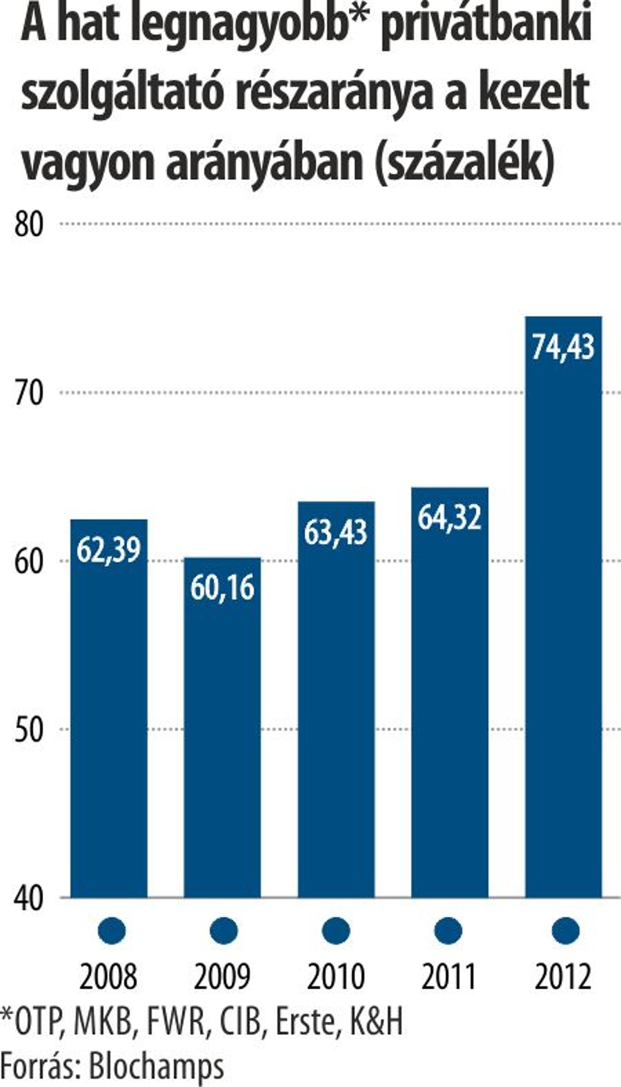 − Örök kérdés, hogy tudunk-e a külföldi befektetőknek professzionális terepet kínálni. Elvileg igen, de ehhez nem csak szolgáltatási vagy költséghatékonysági szempontokat, de az ország iránti bizalmi kérdéseket is megfontolnak a leendő befektetők. A Blochamps Capital véleménye szerint a kincstári optimizmus ezen a téren most nem megalapozott. A szabályozói rendszer gyakori kiszámíthatatlan változása, a tranzakciós illeték, a bizonytalan növekedési kilátások, az iparági adók együttesen nem kifejezetten ideális táptalaja az időközben a svájci privátbanki fellegvárból vagy a ciprusi adótervezési centrumból potenciálisan új elhelyezési terület után kutató befektetőknek. Ugyanakkor határozottan érezhető a komoly közvetlen érdeklődés a korábban Cipruson bankoló FÁK-zóna állampolgárai részéről a professzionális banki szolgáltatásokra. Vitathatatlanul ezen tényezők jelentik tehát a következő évek legnagyobb külső kihívását, mellyel megbirkóznia a magyar privátbanki szektornak kell ugyan, de tenni érte csak mértékkel van módja. A privátbanki szektor belső növekedésénél ugyanis azzal kell számolni, hogy a hazai gazdaság aktuális általános helyzete és a lakosság jövedelmi viszonyai csak lassan fognak pozitív irányban változni.