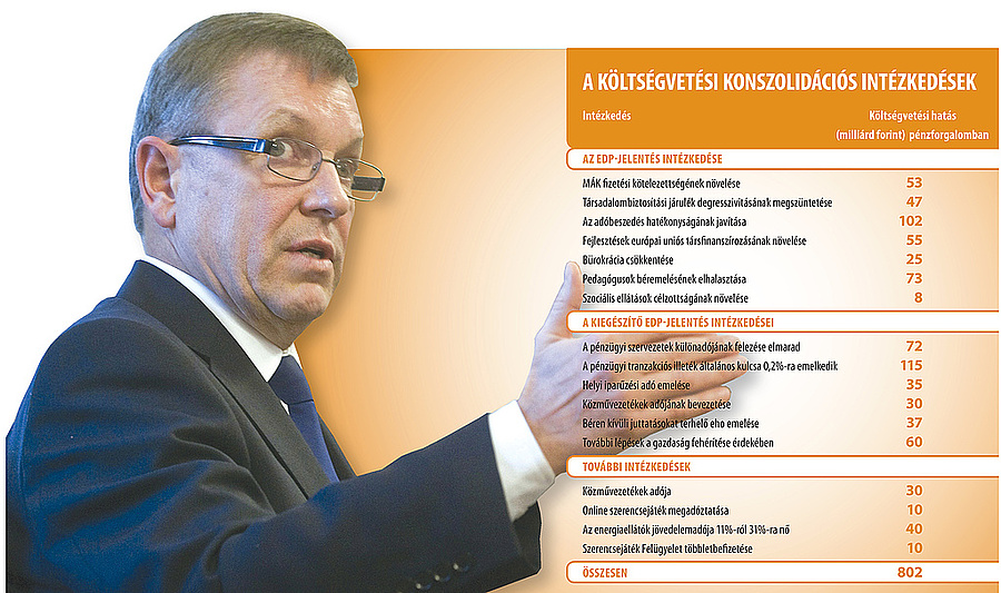 Azonban a fő számok elfogadása után állt elő a kormány a munkahelyvédelmi akciótervvel, amely teljesen új adókat hozott a kis- és közepes vállalkozásoknak, majd októberben az uniós túlzottdeficit-eljárás miatt három lépésben 800 milliárd forintos megszorításról döntött a kabinet, ráadásul a makropályát is újra kellett írni. Így a múlt héten benyújtott − eleddig példa nélküli, százoldalas − zárószavazás előtti módosító indítvány az, amely a 2013-as költségvetést valójában megírja. (A zárószavazás előtti módosítás eredetileg a helyesírási hibák és a jogi pontatlanságok kiszűrésére szolgált, a fő számok módosítását eddig tiltotta az államháztartási törvény, ám ezt a passzust módosította a parlament.)
