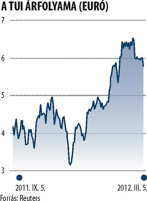 A tőzsdén lévő utazási társaságok egyik legnagyobb piaci szereplője, a TUI a tavalyi lejtmenet után mintegy 100 százalékot erősödött három hónap alatt, részben a közhangulat javulásának, részben az akvizíciós híreknek köszönhetően. Az 5,9 eurós árfolyam azonban még mindig csak a nyár végi értéket jelenti, de úgy tűnik, hogy az utóbbi időben a fundamentumok is javulnak a cég háza táján. A múlt évi visszaesés legfőbb okaként az észak-afrikai belpolitikai események hatására zuhanó utasforgalmat szokás feltüntetni, míg a legfrissebb foglalások már fellendülésről tanúskodnak. A német fogyasztói bizalom adatai nem okoztak csalódást, így joggal remélhető, hogy az idei évre tervezett 3 százalékos forgalombővülés reális lehet.