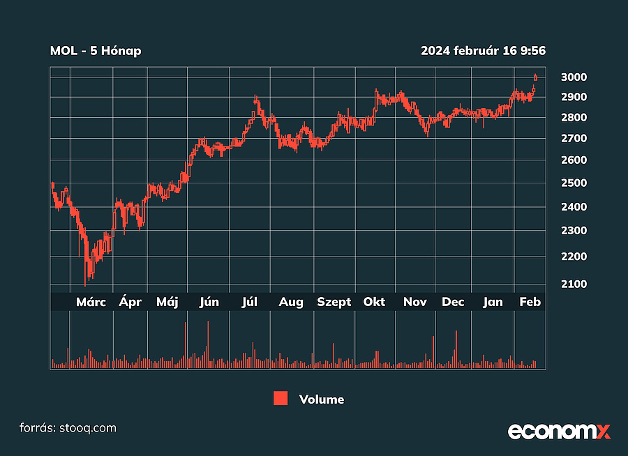 Az idei évre a Mol 1,6 milliárd dollár körüli adózási eredményt és 3 milliárd dollár körüli EBITDA adatot vár. Ez újabb csökkenés, de az a tény, hogy a kiskereskedelmi szegmens aránya gyorsan növekszik, így egyre kevésbé tekinthető kizárólag olajipari cégnek a Mol. Feltehetően ez is szerepet játszott abban, hogy a befektetők jól fogadták az eredményt. Az árfolyam 3000 forint fölé ugrott, és ugyan kissé visszaesett alá, a papír a péntek délelőtti kereskedésben bő másfél százalékkal volt feljebb, mint az előző napi zárásban.