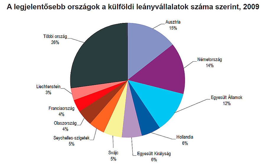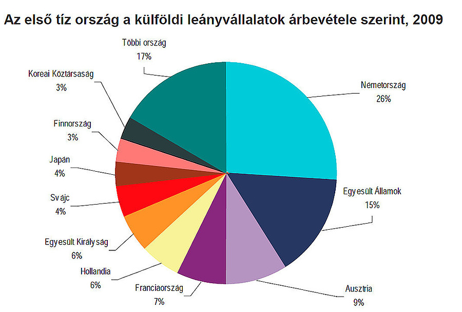 Az összes külföldi leányvállalat 15 százalékát Ausztriából, 14,4 százalékát Németországból irányítják, ugyanakkor ez utóbbiak aránya az összes leányvállalat teljesítményében ennek a kétszerese; árbevételben 26,2 százalék, hozzáadott értékben 28 százalék. A német érdekeltségű leányvállalatok elsősorban a kereskedelemben (bolti vegyes kiskereskedelem és az ahhoz kapcsolódó nagykereskedelem, valamint üzemanyag-kereskedelem) és a feldolgozóiparban, azon belül a közútijármű-gyártásban és az ahhoz kapcsolódó iparágakban vannak jelen.