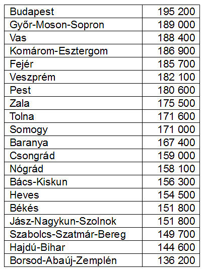 A legtöbbet - nem meglepő módon - Budapesten kérik a pályázók, átlagosan 195 ezer 200 forintot. A fővárost Győr-Moson-Sopron, Vas illetve Komárom-Esztergom megye követi. Havi 180 ezer forint feletti összeget kérnek még Fejér, Veszprém és Pest megye álláskeresői. A legalacsonyabb, nettó 150 ezer forint alatti fizetési elvárás pedig Szabolcs-Szatmár-Bereg, Hajdú-Bihar valamint Borsod-Abaúj-Zemplén megye álláskeresőinél mutatkozik.