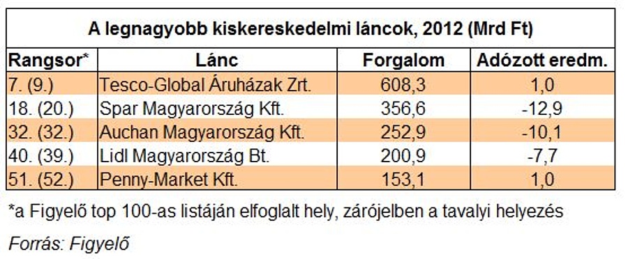 A társaság ugyanakkor továbbra is Magyarország legnagyobb forgalmú kiskereskedelmi vállalata, a második helyen (a Figyelő toplistán a 18-on) a Spar Magyarország Kereskedelmi Kft. áll, 356,6 milliárdos bevétellel és 12,9 milliárdos veszteséggel, majd az Auchan Magyarország Kft. és a már említett Lidl következik.