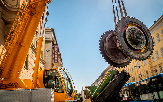 - daruval kiemelve - főleg a nagyobb súlyú daraboknál (ez a Belvárosban például a Ferenciek terén egy külön kihívás, melyet a helybeliek és a közlekedők teljes megelégedésével valósított meg a SWIETELSKY Építő Kft.);