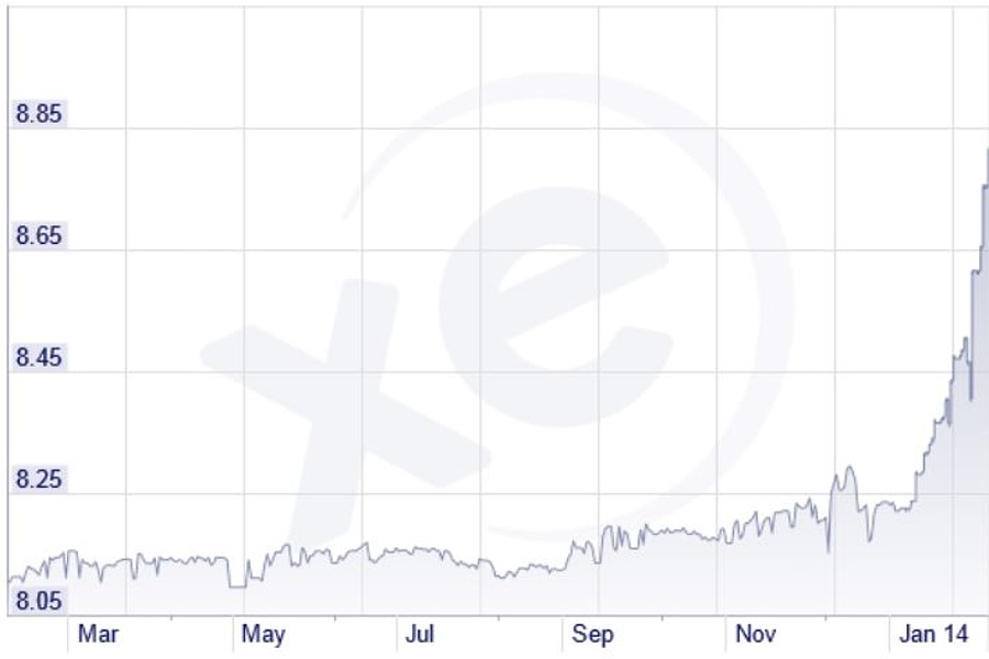 A fordulat harmadik oka, hogy összetalálkozott a költségvetés és a folyó fizetési mérleg magas hiánya, az alacsony devizatartalék, illetve az az orosz döntés, amely szerint az új kormány felállásáig felfüggesztik az Ukrajának nyújtott 15 milliárd dolláros hitel újabb részleteinek folyósítását. Végül a feltörekvő piaci devizák gyors értékvesztése az elmúlt két hétben relatíve túlértékeltté tette a hrvinyát.