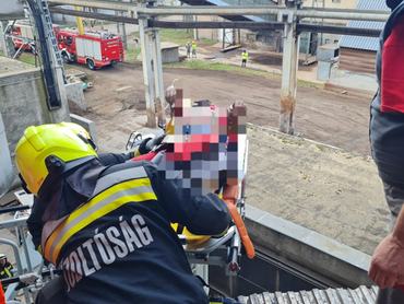 Extrém mentés Ajkán: nyolc méter magasan feküdt a súlyosan sérült munkás