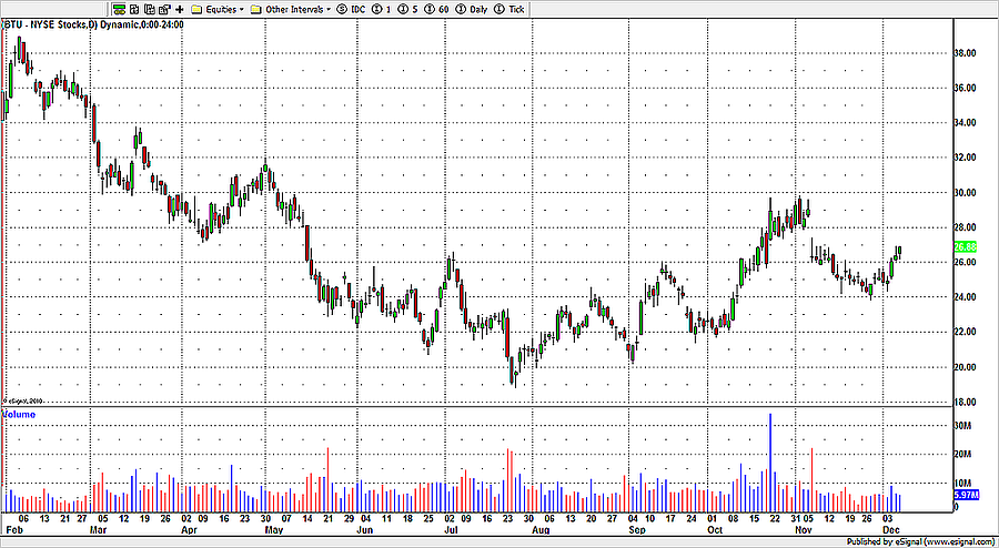 Véleményünk szerint a Peabody Energy Corp. nevű amerikai szénbánya lehet a történet egyik nyertese. A vállalat hat kontinensen van jelen, és 29 bányával rendelkezik. 2011-ben közel 9 milliárd tonna szenet termelt ki és juttattak el a fontosabb kereskedelmi partnereknek.