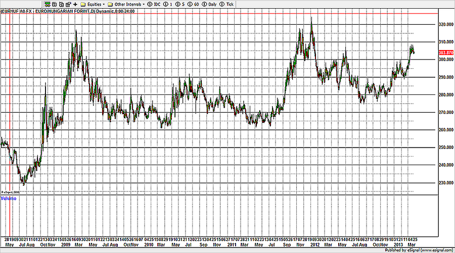 Nyilvánvalóan tudjuk, hogy az elemzőknek meg kell határozni egy célértéket, mert különben senki nem fogja elolvasni az elemzésüket, de egy dolog bizonyos: ha elfogadom a Morgan Stanley véleményét, akkor most pontosan semmit nem szabad csinálnom az EUR/HUF piacon. Jelenleg 305 forinton lehet venni egy eurót az azonnali piacon, a december végére számított határidős vételi ár pedig a forint-euró kamatkülönbözet miatt 314 forint. Azaz ha tényleg 320 lesz december végén az euró, akkor kereshetünk az euró vétellel 6 Ft-ot, azaz két százalékot, ha nincs tőkeáttételünk.