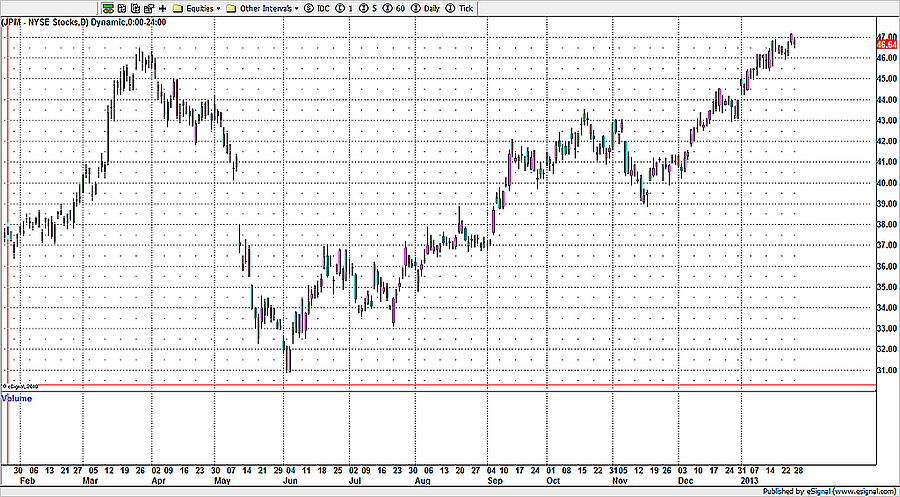 Ezt figyelembe véve, valamint azt, hogy a korábbi 5 milliárd dolláros botrány (,mely kereskedési veszteségből adódik belső szabálytalanságok miatt) már elülni látszik, könnyen lehet, hogy az árfolyam átbillen a többéves csúcsokon, és a korábbi 2008-as magasságokig száguldhat. Tekintve, hogy az S&P 500 index a 2008-as szinteken tartózkodik, a bankok is követhetik ezt a "trendet".