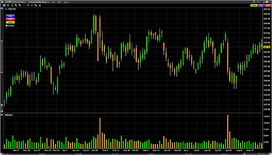 Amint az ábrán is látszik, a február óta a papír nem nagyon lépett ki a 250-280 dolláros szintből, ami több mint 10%-os sáv, ráadásul többször is teljesítette a papír ezt a távot. Értelem szerűen a legaljáról és a legtetejéig vagy éppen fordítva nem lehet benne lenni, de egy pár jó kört azért lehet futni a papírban. Ilyenkor arra kell figyelni, hogy a stoppunkat a sávon kívülre pozícionáljuk, valamint, hogy törekedjünk arra, hogy lehetőség szerint a longunkat minél lejjebbről, míg a shortunkat minél feljebbről indítsuk.