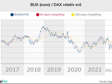 Nagyon komoly törést okozott a magyar részvénypiacnak az Ukrajna elleni orosz támadás, s a technikai elemzés alapján akár tartósnak is bizonyulhat a hazai tőzsde nemzetközi összehasonlításban is gyenge szereplése. Azt, hogy a magyar részvények nemzetközi összehasonlításban hogyan szerepelnek és milyen teljesítményre képesek. jól mutatja rendszerint a BUX index és a német DAX index relatív teljesítményének mutatója.