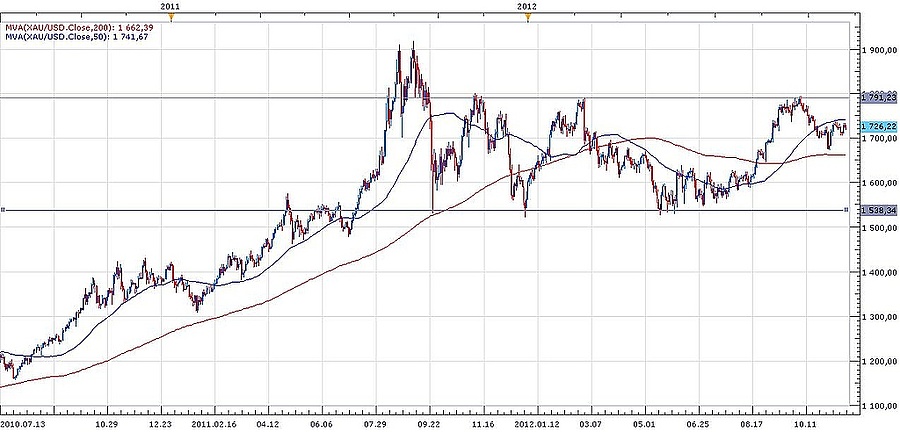 Az elemzők és a nagybefektetők a jelek szerint hisznek abban, hogy 2013-ban is folytatódik az arany 12 éves menetelése. A Bloomberg által megkérdezett 16 elemző átlagosan 1925 dolláros unciánkénti aranyárfolyamot vár a jövő év negyedik negyedévére, ez 12 százalékkal haladja meg a nemesfém jelenlegi árfolyamát. A folyamatos jegybanki lazítások miatt számos nagybefektető is fantáziát lát még az aranyban, a harmadik negyedévben a Soros Fund Management 49 százalékkal növelte az arany árfolyamának emelkedésére játszó pozícióinak nagyságát, a John Paulson nevével fémjelzett Paulson & Co. pedig most már 3,6 milliárd dollárnyi kitettséggel rendelkezik a legnagyobb tőzsdén jegyzett, az arany árfolyamához kötött alapban, az SPDR Gold Trustban.