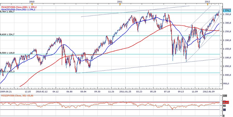 A vállalati nyereségek eddig kevésbé voltak jók, mint a korábbi negyedévekben s nem hiszem, hogy most már sor kerülne valamilyen fajta tűzijátékra - nyilatkozta Robbert Van Batenburg, a Louis Capital stratégája a Reutersnek. Az S&P 500-as index 1361 ponton fejezte be a pénteki kereskedést, ez tavaly május üta a legmagasabb szintje. Csak emlékeztetőül, a Reuters konszenzusa szerint decemberben az elemzők átlagosan 1340 pontos indexértéket vártak 2012 decemberére. Ha az index 1370 pont fölé emelkedne, akkor azzal a Lehman Brothers 2008. szeptemberében történt összeomlása óta nem tapasztalt értéket érne el. A Dw Jones Industrial eközben gyorsan közelít a pszichológiai jelentőséggel bíró 13 000 pontos érték felé, a Nasdaq Composite pedig 2000 óta nem látott magasságban jár, 300 pont közelében.