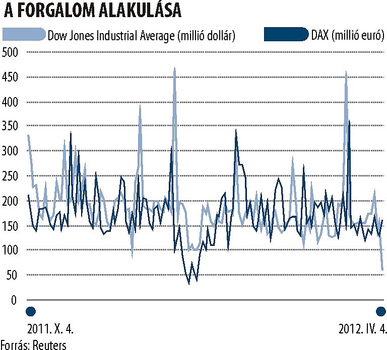 Sok minden múlik Blahó szerint Amerikán is: ha ott ismét kockázatvállalóbbá és aktívabbá válnak a befektetők, az átcsaphat az óceán ezen oldalára is. A tengerentúlon önmagában a New York-i értéktőzsde (NYSE) forgalmát vizsgálva valóban szembeötlő a visszaesés, ám az elektronikus kereskedési platformokat, illetve a többi börze által bonyolított forgalmat is figyelembe vevő mutató, bár csökkenést tükröz, kevésbé fest vészes képet − véli Blahó.