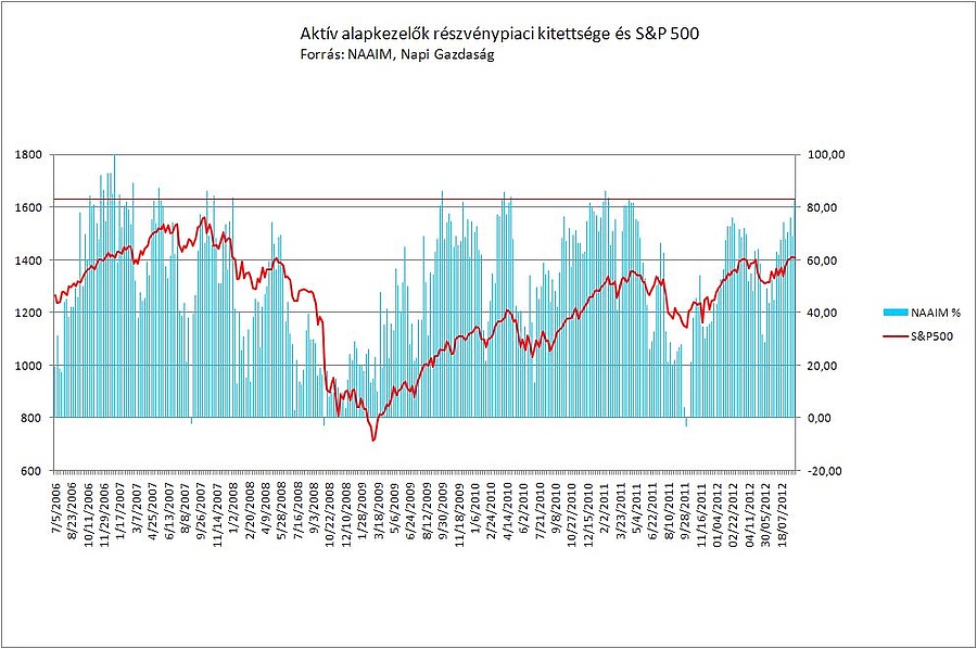 Elképesztő optimizmussal vág neki a szeptembernek az amerikai profi befektetői társadalom. Az amerikai aktív alapkezelők szövetsége, az NAAIM legutóbbi felmérése szerint 82 százalék fölé emelkedett a tagjai által kezelt portfóliók nettó vételi kitettsége az S&P 500-as index irányában, ilyen magas értékekre utoljára 2011 április végén, közvetlenül a vezető indexben féléves, több mint 20 százalékos veszteséget hozó lejtmenet megindulása előtt volt példa. Az ellentét analízis hívei szerint ez mindenképpen figyelmeztető jel, hiszen arra utal, hogy a piaci szereplő többsége már egy irányba áll, s így nem marad további vételi erő a partvonalon, amely további áremelkedést tudna generálni a részvénypiacon. A felmérés 2006 eleje óta tartó történetében számtalan esetben fordult elő, hogy egy-egy lokális piaci csúcspont előtt 80 százalék fölé emelkedett a vizsgált körben a nettó vételi kitettség a portfóliókban, igaz, egy-két esetben arra is volt példa, hogy az ilyen helyzeteket további emelkedés követte.