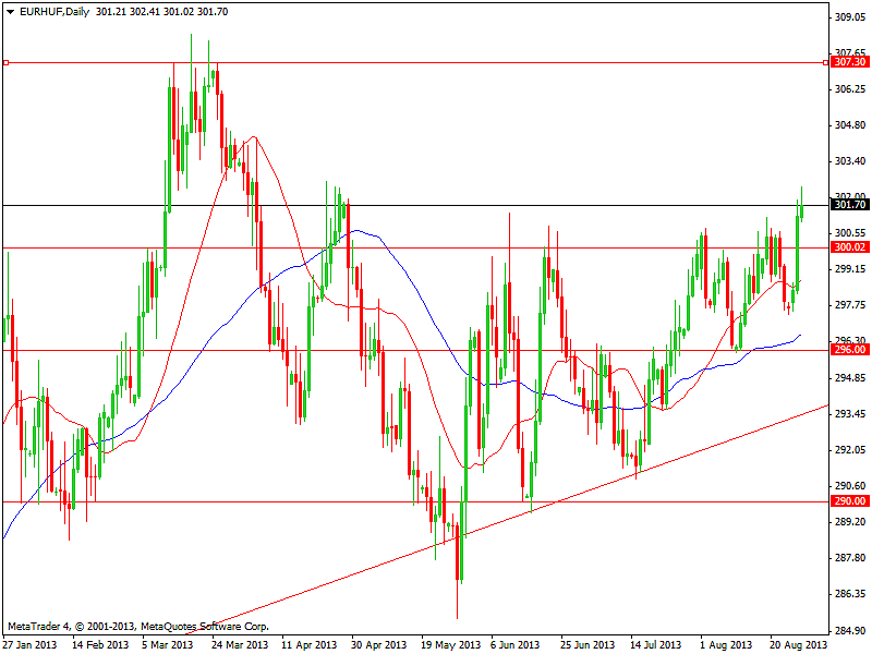 A lélektani 300-as szint felett ragadt hazai fizetőeszköz számára a 301-es rövid távú ellenállás áttörésével tovább tér nyílt meg felfelé, így a heti bázison formálódó, emelkedő háromszögből felfelé kitört EURHUF kurzusa számára a következő meghatározó ellenállási zónát a 307,30-308-as tartomány jelenthetné a későbbiekben.