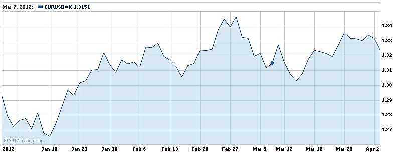 Az első negyedévben alapvetően nem a fundamentumok, hanem külső tényezők, így például a jegybanki akciók mozgatták meg a fontosabb árfolyamokat. A három hónap egyértelmű felülteljesítője az euró volt, amelyet az ECB akciói miatti optimizmus a március közepi 1,3486-os lokális csúcsáig repített - ez több mint 3 százalékos felülértékelődés a dollárral szemben januárhoz képest -, ám az erősnek bizonyuló 1,35-ös ellenállást egyszer sem sikerült áttörni. Ráadásul a negyedév végére a befektetők körében egyértelműen az a nézet alakult ki, hogy az ezermilliárd eurós nagyságrendű két LTRO-programmal minden puskaporát ellőtte az ECB, ezért itt a második negyedévben kivárásra kényszerülhet a jegybank, sőt rosszabb esetben akár az inflációs veszély irányába is eltolódhat a hangsúly.