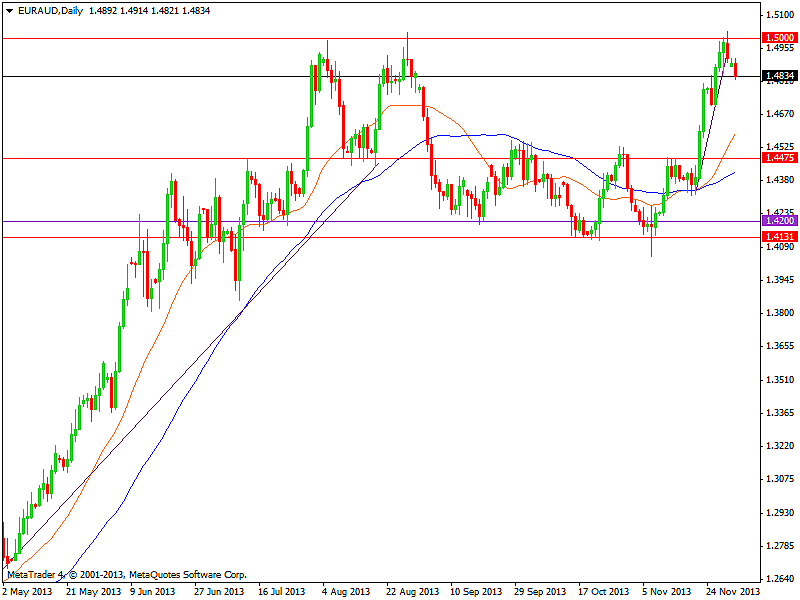 Folytatódó negatív korrekcióval indította a hetet a devizapár. Az elmúlt hét második felében a lélektani szintről lefordulva ismét ereszkedni kezdett az EURAUD kurzusa; miután a jegyzés a nyár folyamán már kétszer is lefordult a meghatározó, 1,5000-ös ellenállásról.